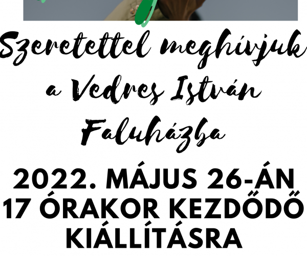 Szeretettel meghívjuk a Vedres István Faluházba 2022. május 26-án 17 órakor kezdődő kiállításra, mely a településünkhöz kötődők kézműves termékeit mutatja be.