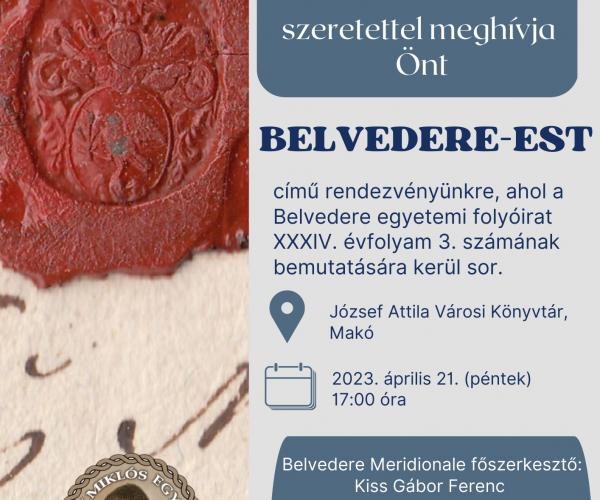 2023. április 21-én (péntek) 17 órától a Belvedere folyóirat Makó történetével kapcsolatos számát mutatják be a szerzők a könyvtárban.
