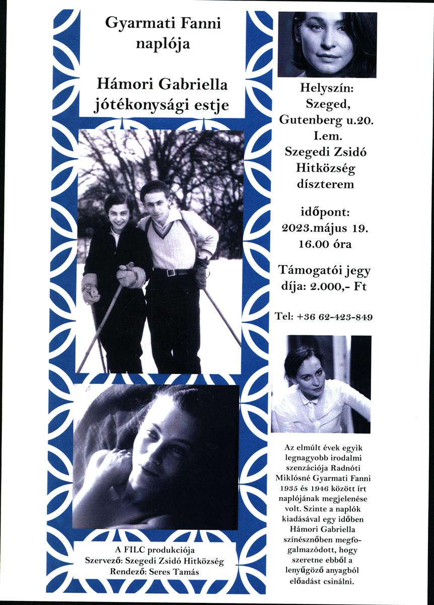 Ábrahám Vera ajánlásával Kategória: Tagjaink által szervezett programokSzeged térségeGyarmati Fanni naplója.Hámori Gabriella jótékonysági estje.