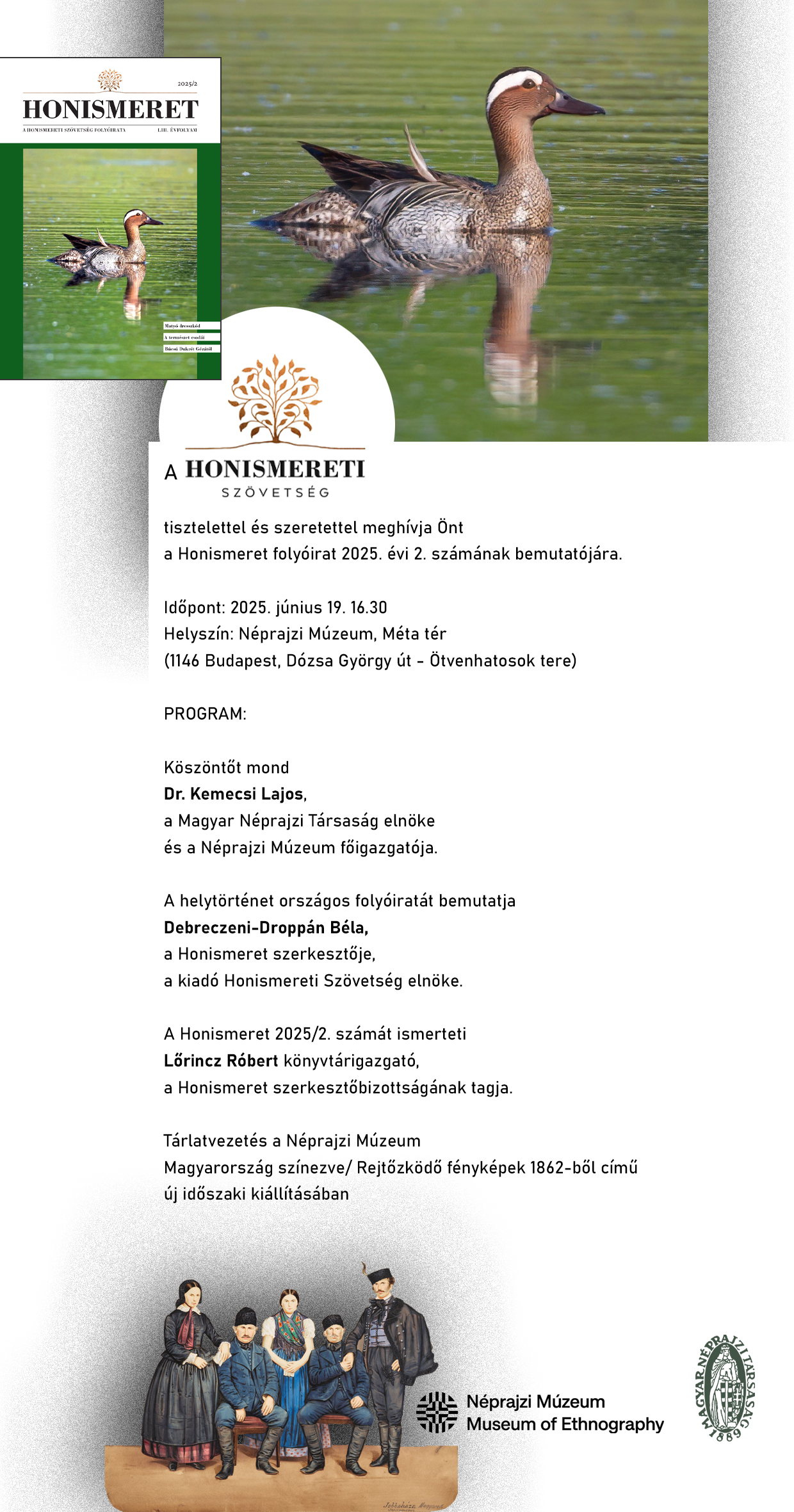 A Honismeret folyóirat legújabb számának bemutatójára várják az érdeklődőket, valamint pályázati lehetőségekre is felhívjuk olvasóink figyelmét Kategória: Honismereti Szövetség által szervezett, javasolt program