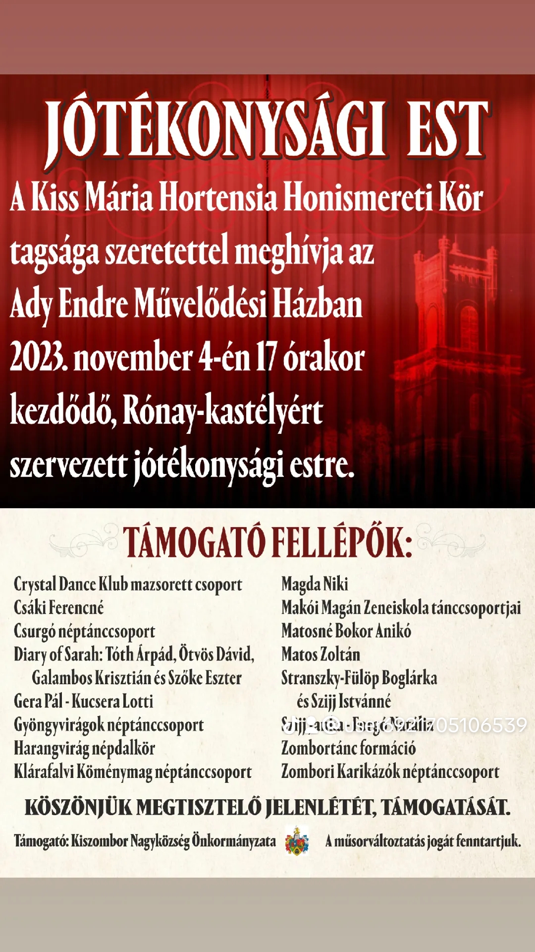 Kiss Mária Hortensia Honismereti Kör várja tagjainkat Jótékonysági estjére Dátum: 2023.11.04.Kategória: Tagjaink által szervezett programokMakó – Kiszombor térsége