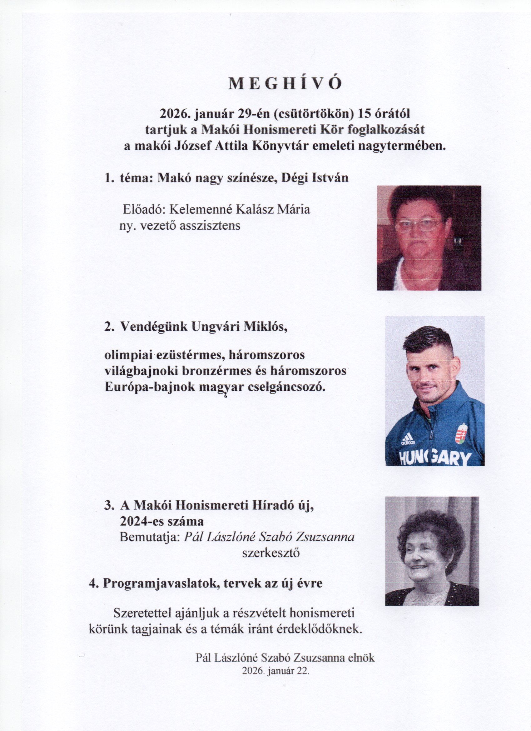 A Makói Honismereti Kör januári programját ajánljuk Dátum: 2026.01.29.Kategória: Makó – Kiszombor térségeSzeged térsége