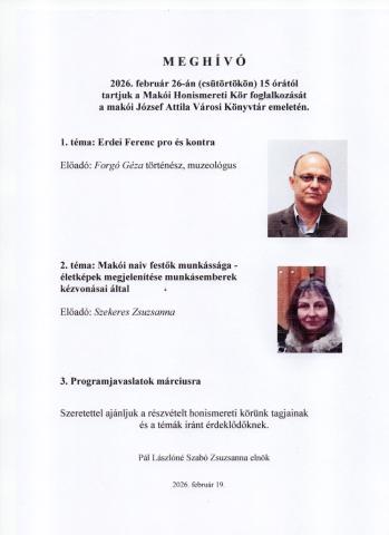 A Makói Honismereti Kör tagjai várnak miden érdeklődőt programjukra Kategória: Tagjaink által szervezett programokMakó – Kiszombor térsége