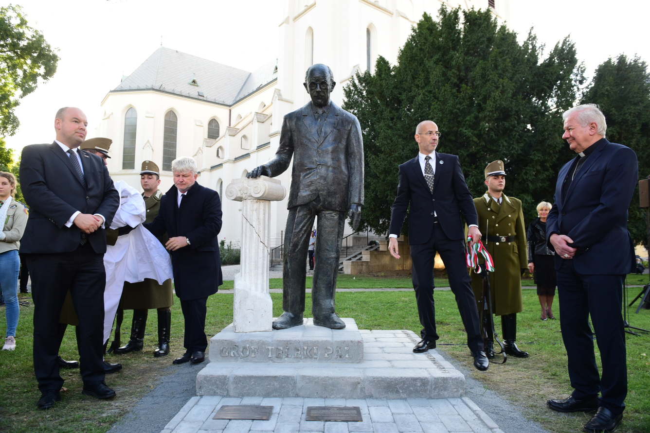 Gróf Teleki Pál szobrát katonai tiszteletadás kíséretében leplezték le október 21-én, egy szimbolikus helyszínen, a rókusi templom előtt, rangos meghívottak jelenlétében.