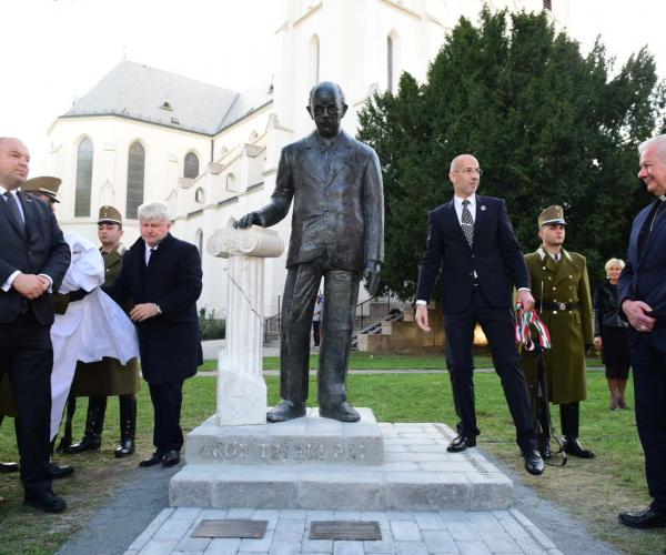 Gróf Teleki Pál szobrát katonai tiszteletadás kíséretében leplezték le október 21-én, egy szimbolikus helyszínen, a rókusi templom előtt, rangos meghívottak jelenlétében.