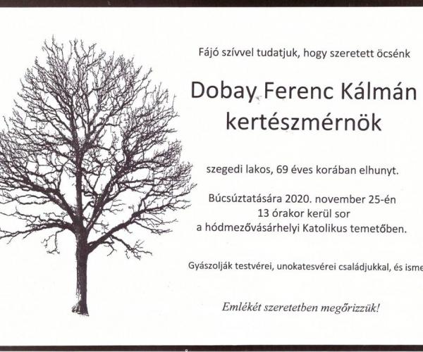 Dobay Ferenc Tagtársunk nyugodjon békében!