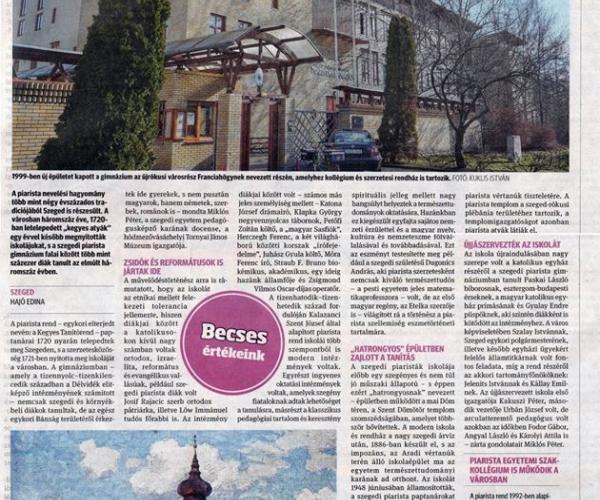 A piarista szerzetesrend háromszáz éve telepedett meg Szegeden. Erről Dr. Miklós Péter, a Tornyai János Múzeum igazgatója, az Emlékpont intézményvezetője nyilatkozott a Délmagyarország 2020. február 18-i számában.