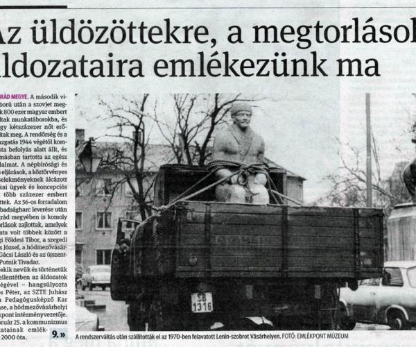 A kommunizmus áldozatainak emléknapján Dr. Miklós Péter, az Emlékpont intézményvezetője, a Tornyai János Múzeum igazgatója nyilatkozott a Délmagyarországnak a szocialista diktatúrák világáról.