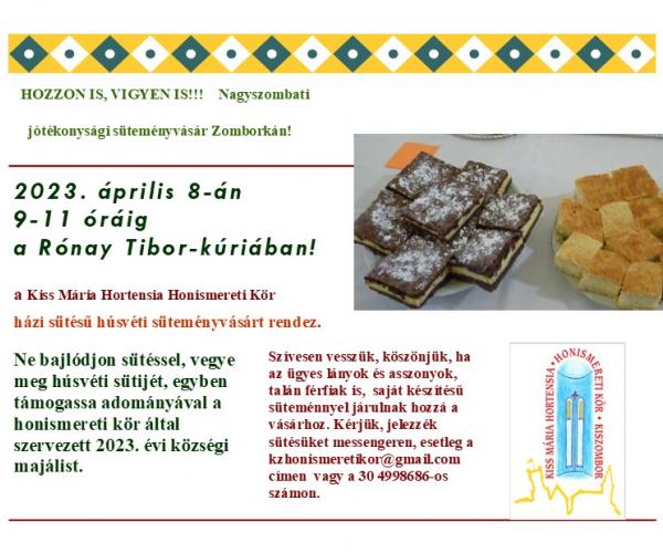 Húsvéti rendezvényeire várja tagtársainkat a kiszombori Kiss Mária Hortensia Honismereti Kör...