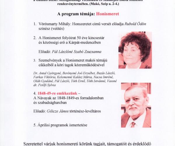 Szeretettel hívunk és várunk mindenkit a 35 éves Makói Honismereti Kör május 25-ei ünnepi rendezvényére a csatolt meghívó szerint.