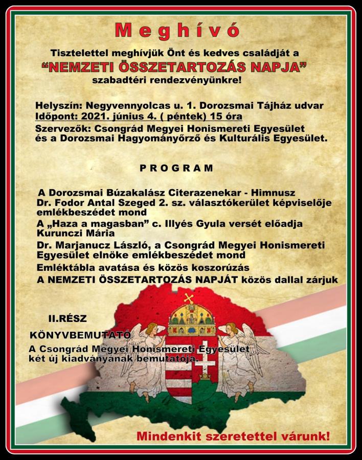 Jelenlegi helyCímlap » Nemzeti összetartozás napján, június 4-én emléktáblát avattunk és bemutattuk egyesületünk új évkönyvét
